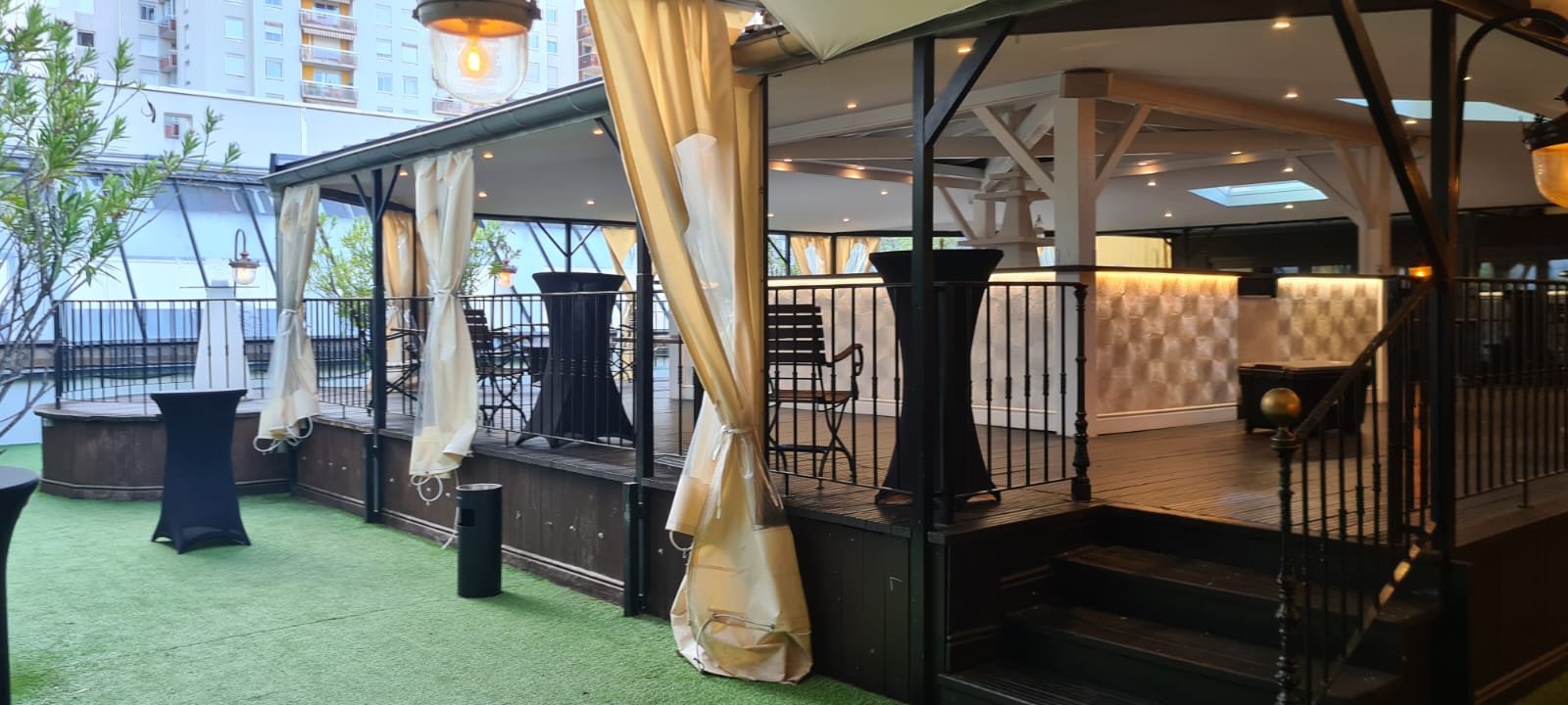 Profitez d'une superbe terrasse de 400m2 couverte, exploitable en toute saison, pour le temps de votre cocktail !